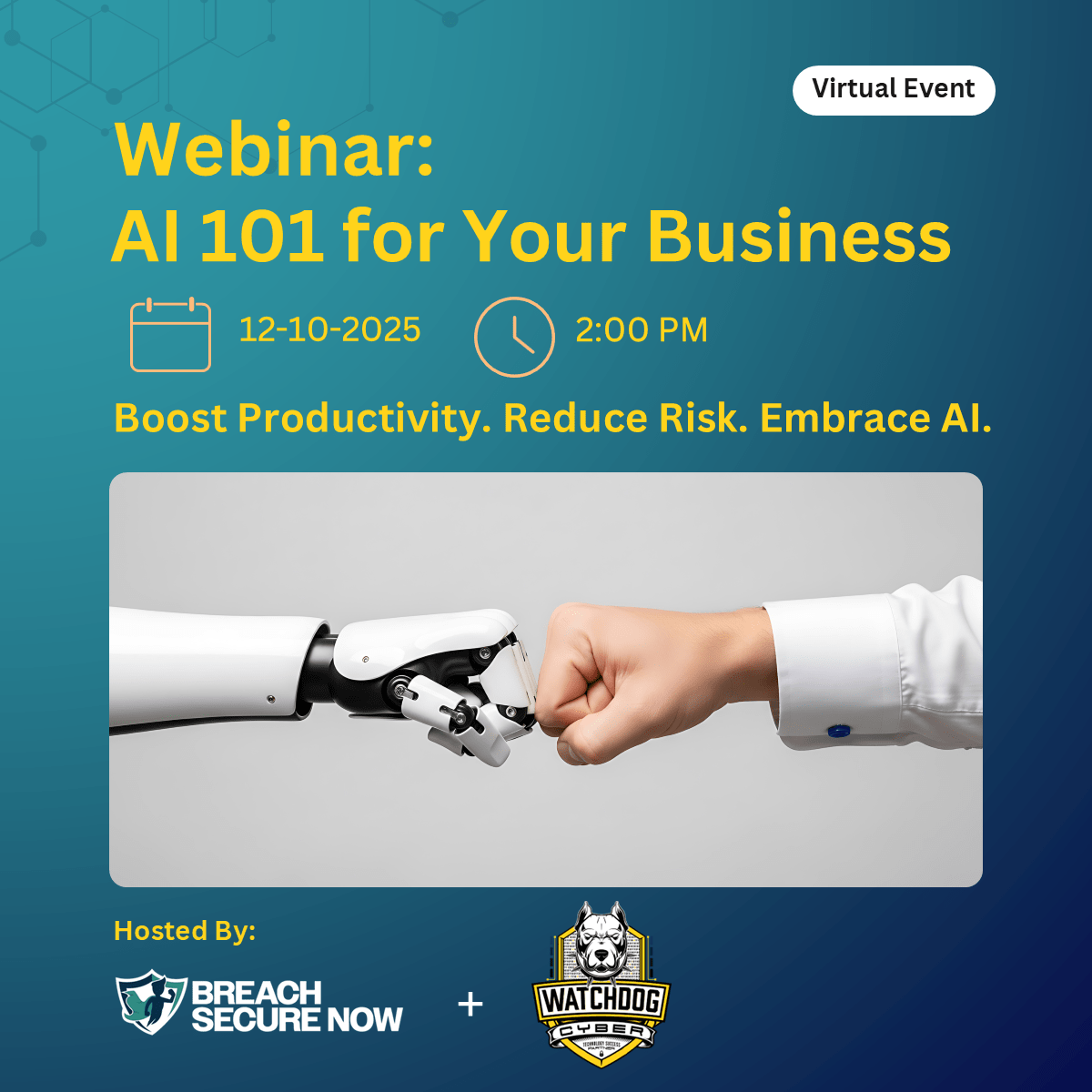 Join us for an engaging webinar where you’ll discover how AI can help your business save time, boost productivity, and stay competitive, all while learning how to avoid the risks that come with this powerful technology.