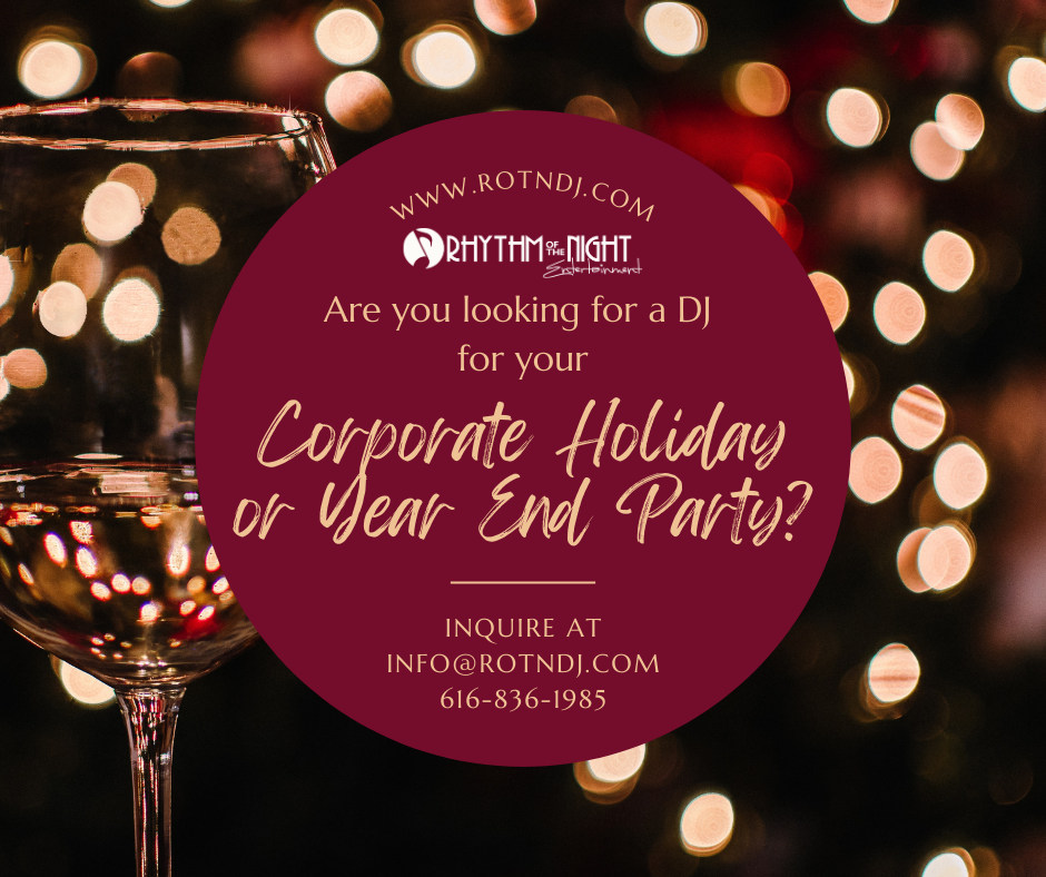 Looking for a DJ and/or a Photobooth for your company's Holiday Party? Rhythm of the Night Entertainment would be happy to provide a Professional DJ, and/or a Photobooth or 360 Booth at your next corporate get together.