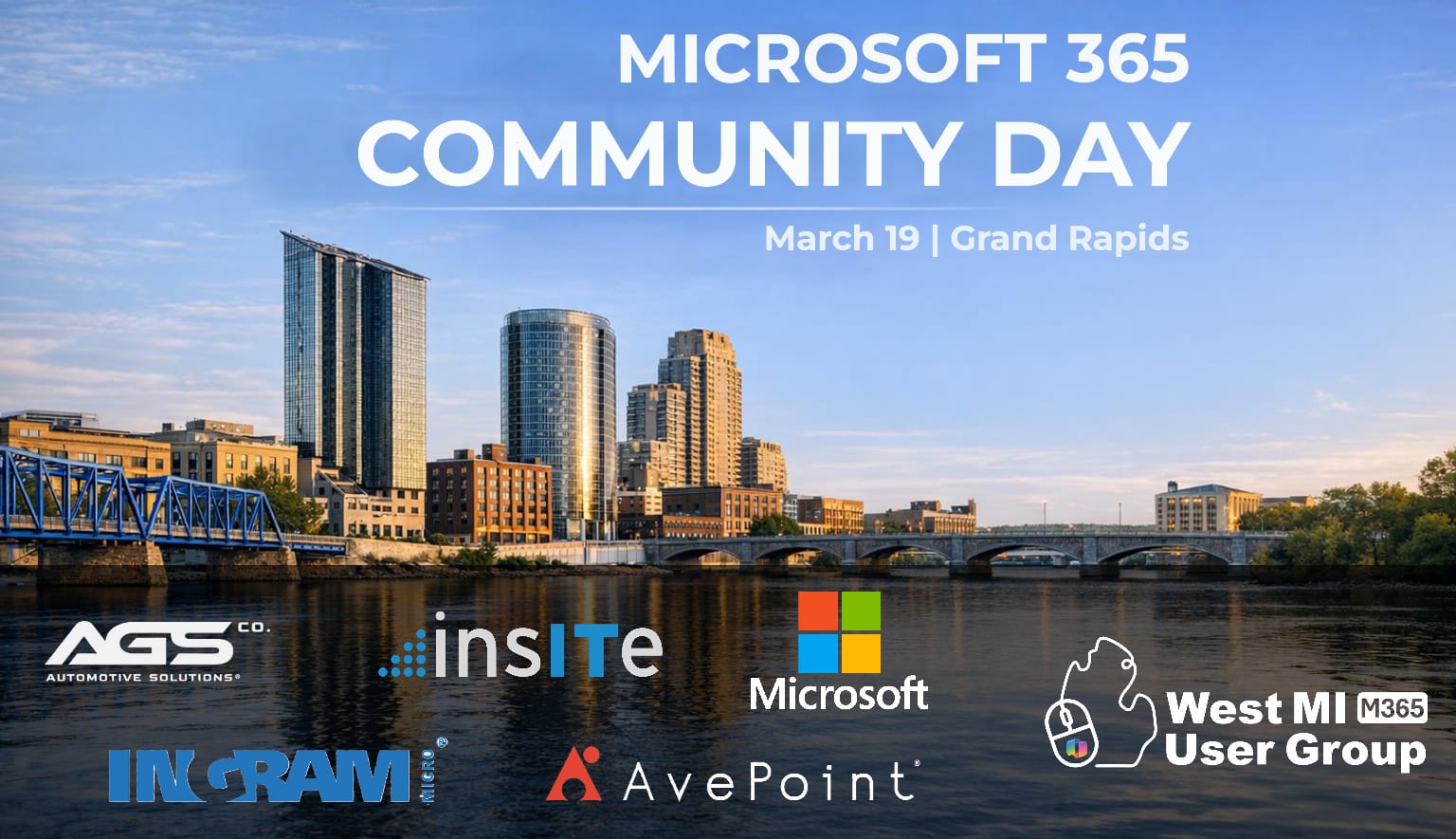 We’d love to see you at West Michigan Microsoft 365 Community Day on Thursday, March 19 (10:00am–4:00pm) in Grand Rapids. It’s a free, in‑person day built for M365 users, by M365 users, focused on real-world use of Microsoft 365 Copilot, Teams, Loop, and SharePoint.